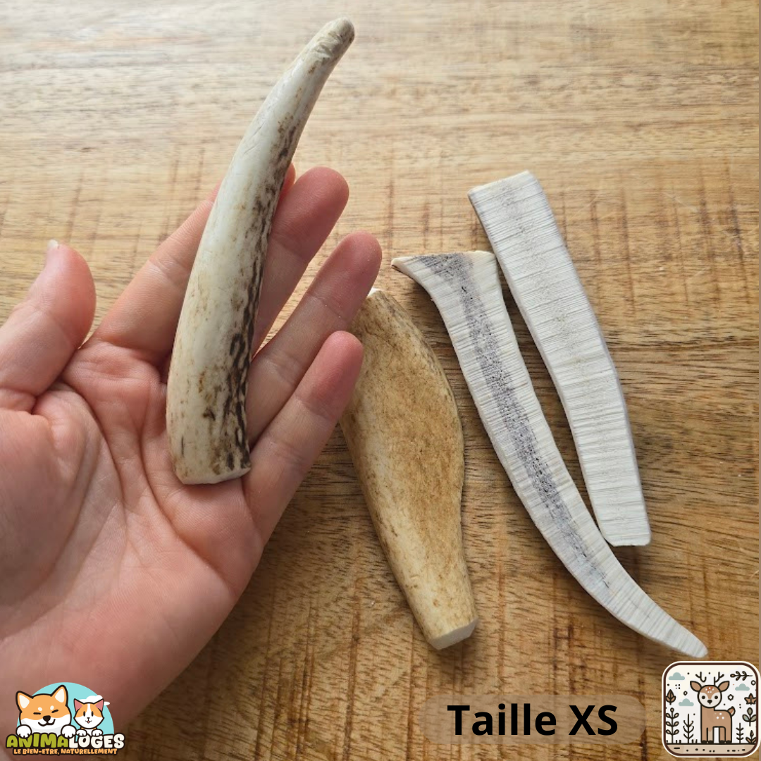 💡 Astuce : Le bois de cerf tranché est parfait pour les chiens qui découvrent les bois de mastication. L’accès à la moelle les motive davantage et facilite l’utilisation.