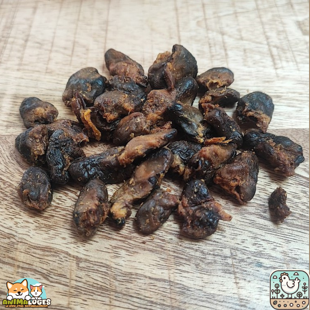 Le Cœur de poulet séché pour chien et chat, 100% naturel et sans additifs, est idéal pour enrichir les jeux, les séances d’éducation ou simplement pour faire plaisir à votre compagnon.