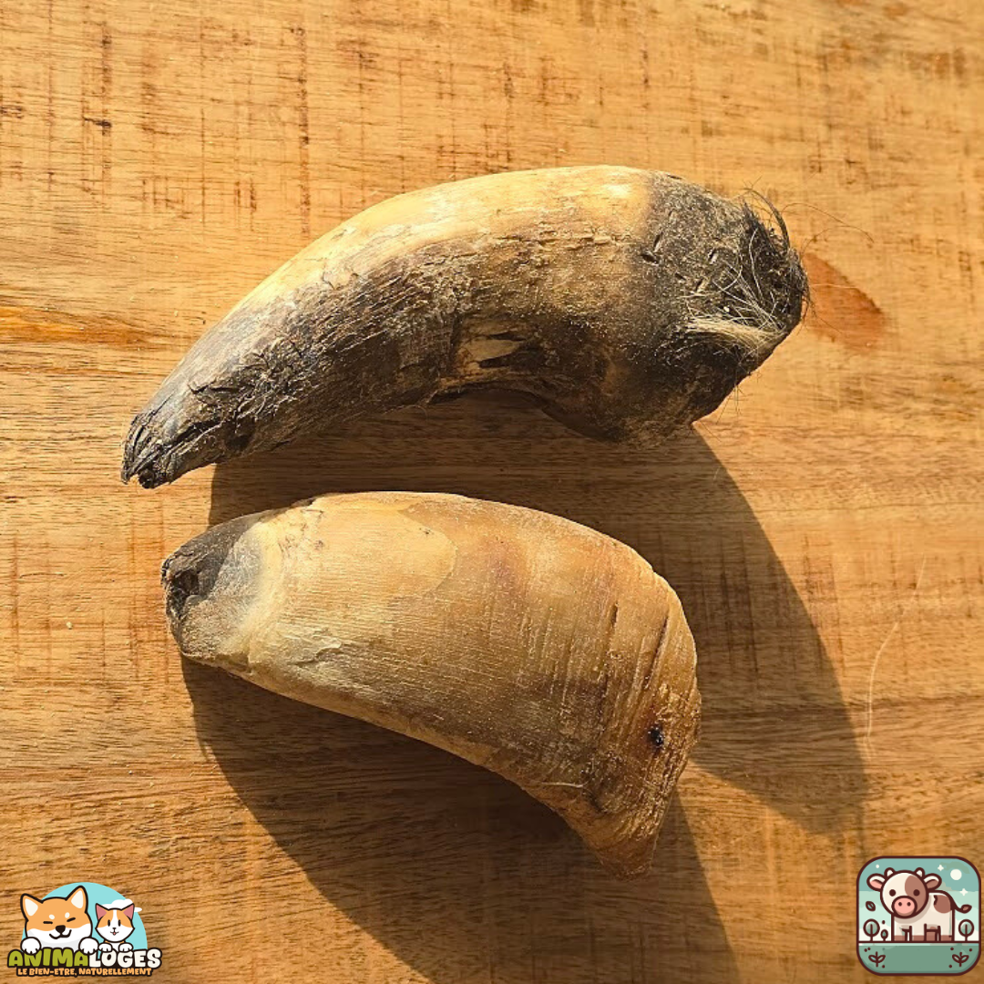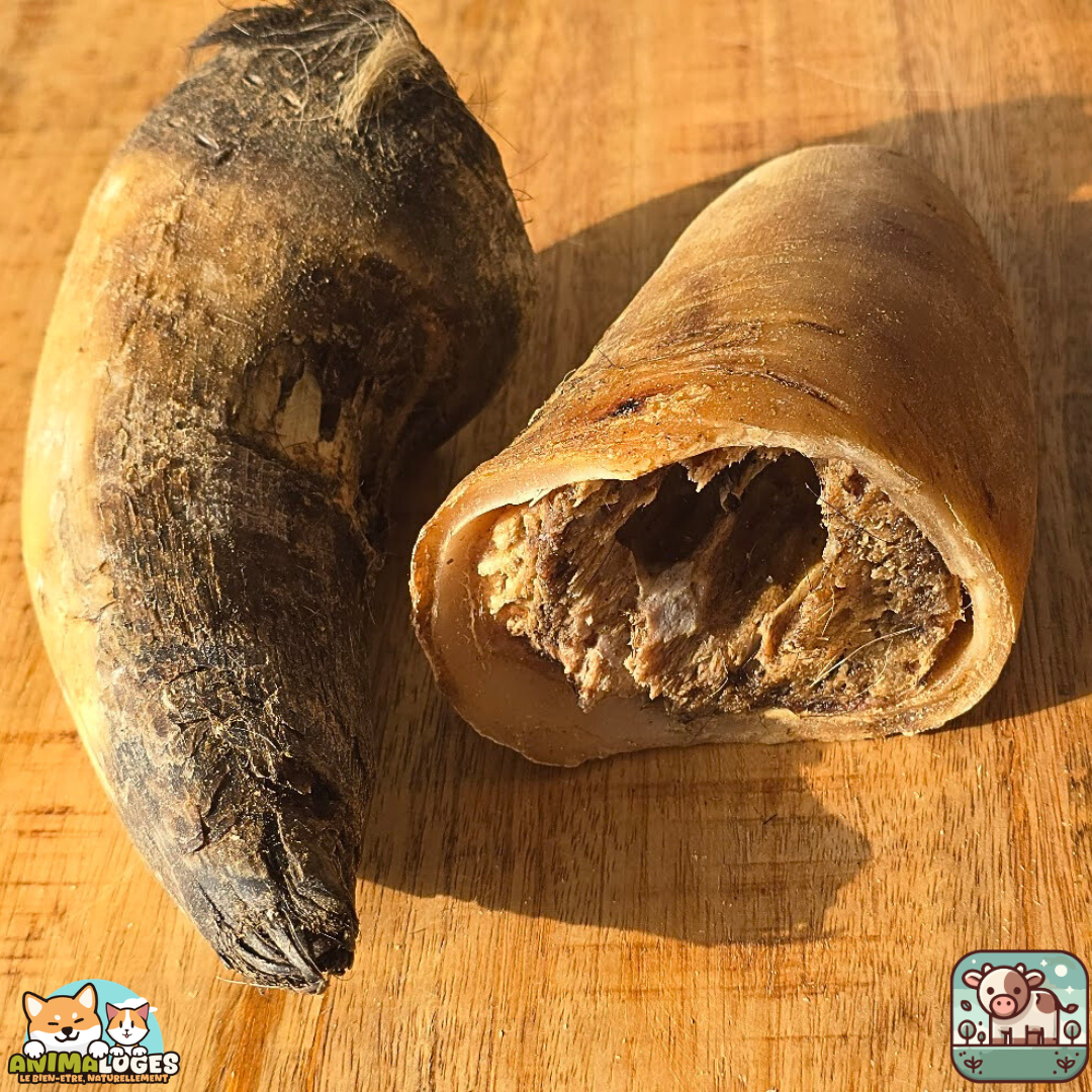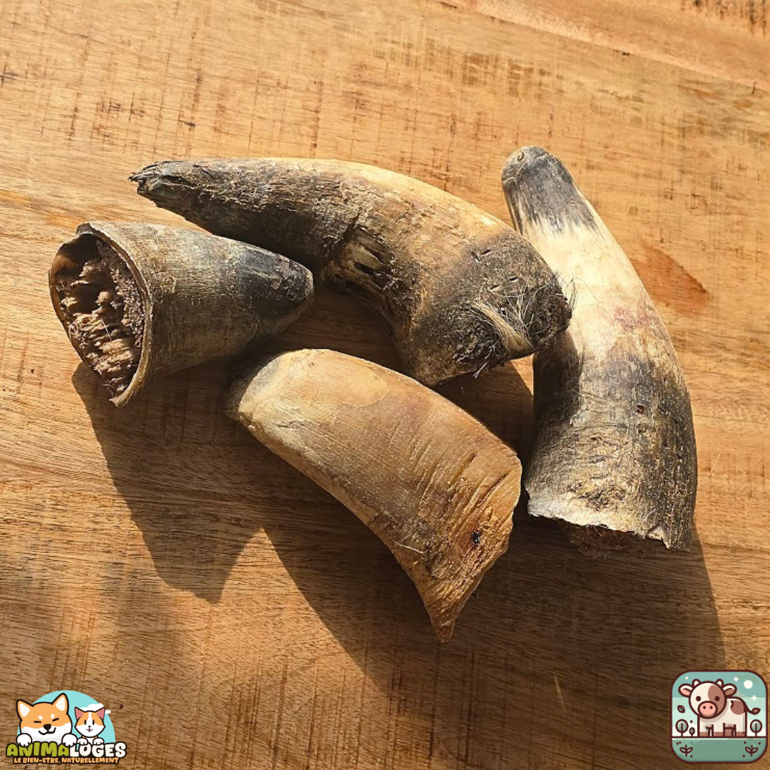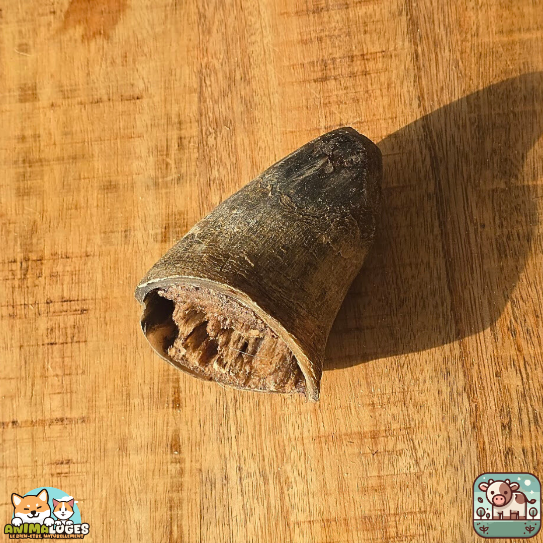 La corne de bœuf est faible en matières grasses, riche en minéraux et protéines naturelles, et constitue une alternative saine aux friandises industrielles trop riches en additifs. Elle peut être donnée telle quelle ou garnie de pâtée ou de fromage pour prolonger le plaisir de mâchouiller.