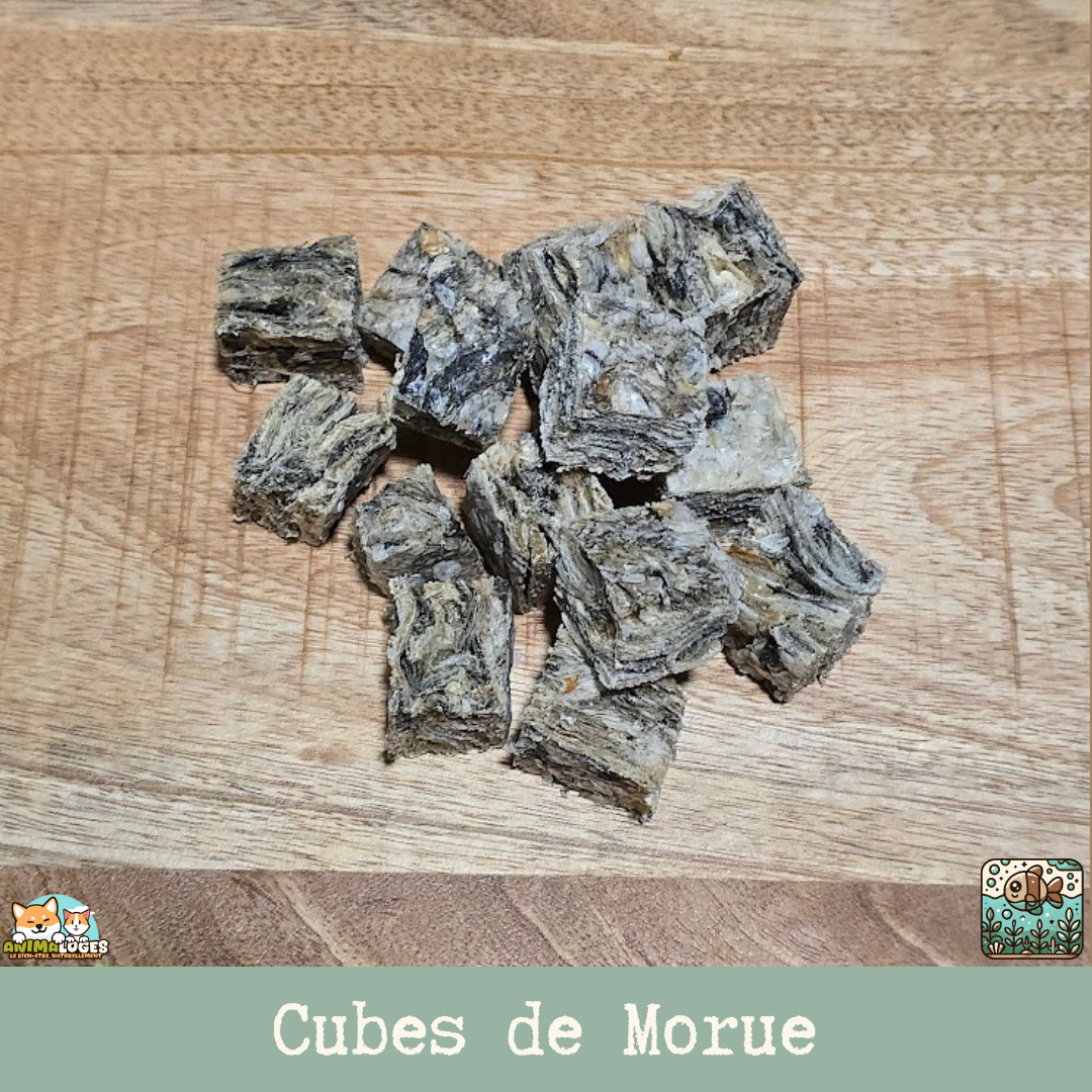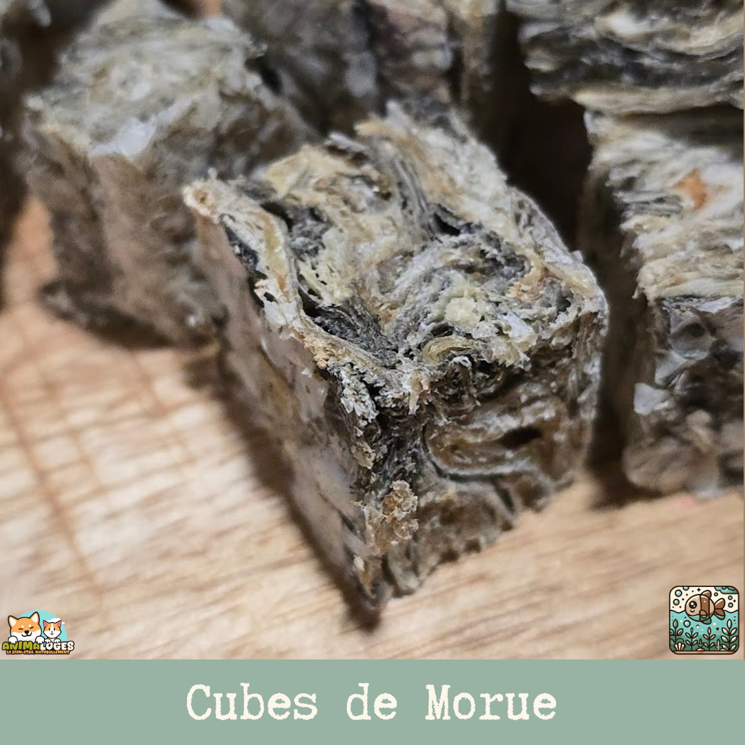 Les cubes de peau de morue sont de délicieuses friandises croustillantes , idéal pour les adeptes de poisson, les chiens allergiques ou simplement pour apporter de la variété et des acides gras supplémentaires à votre loulou !