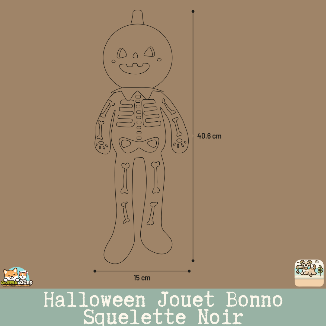 Le Jouet Bonno Squelette Noir est un jouet d’Halloween conçu pour vos chiens (ou animaux compatibles) qui mêle fun et ambiance effrayante. Il adopte la silhouette classique d’un squelette, avec une finition noire et orange pour un rendu festif.