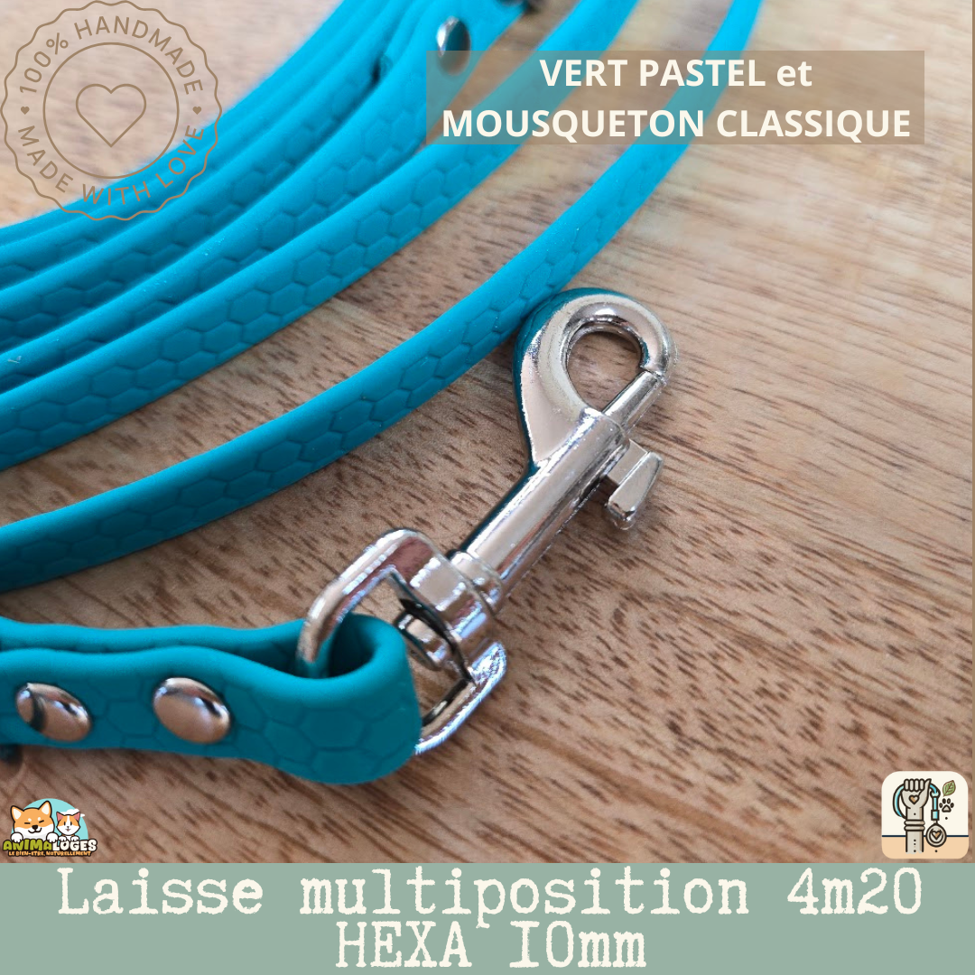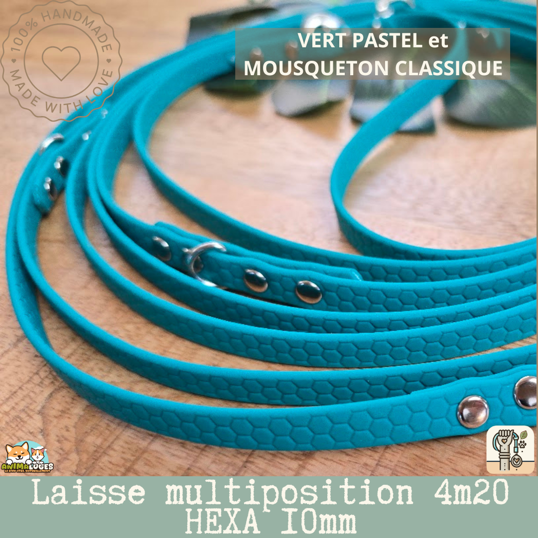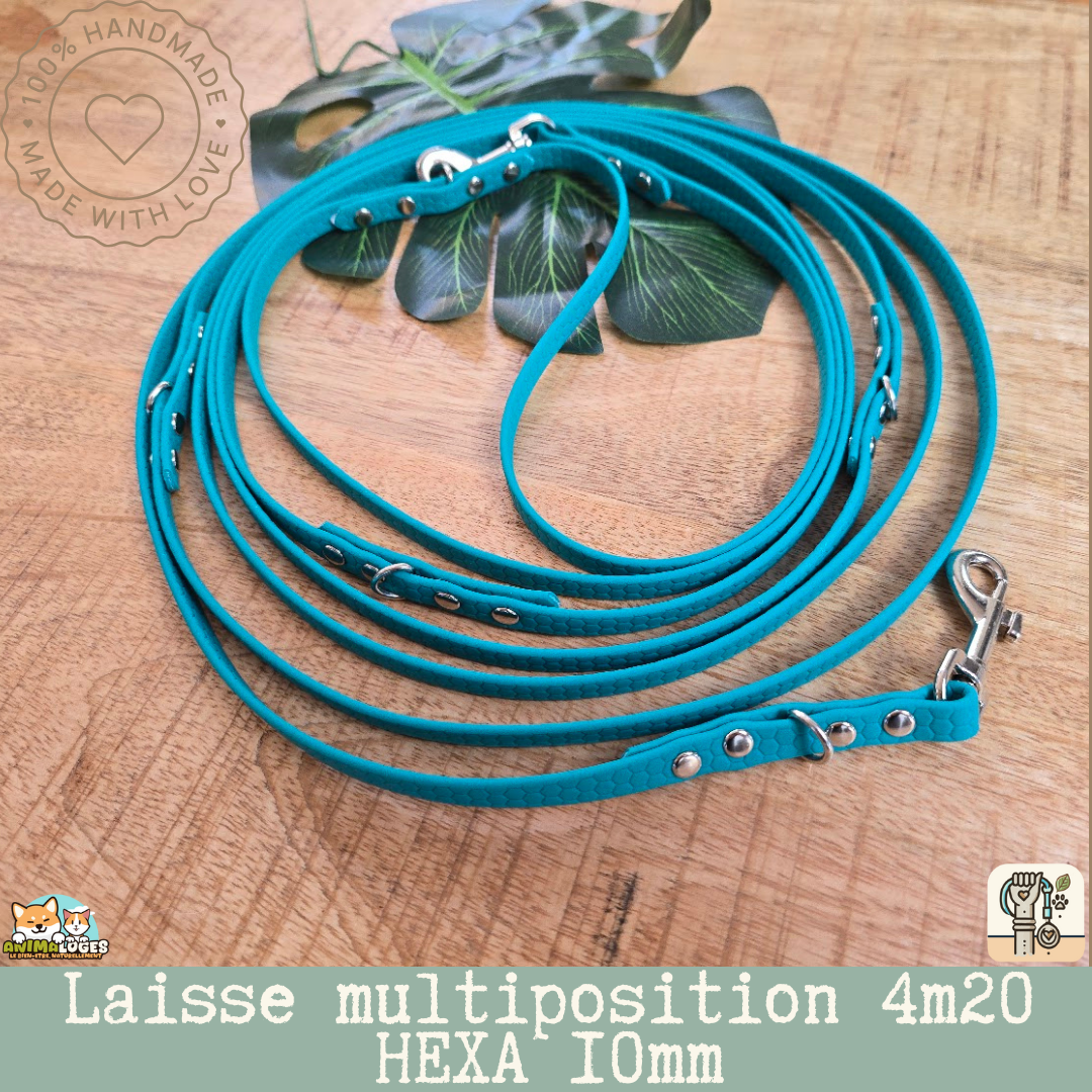 Offrez une liberté contrôlée à votre compagnon grâce à notre laisse multi-positions HEXA de 4,20 mètres, conçue et fabriquée à la main dans mon atelier. Ce modèle fin, élégant et léger est parfaitement adapté aux chiens de petite à moyenne taille et aux chats, ou à ceux qui recherchent une laisse plus fine sans compromis sur la résistance.