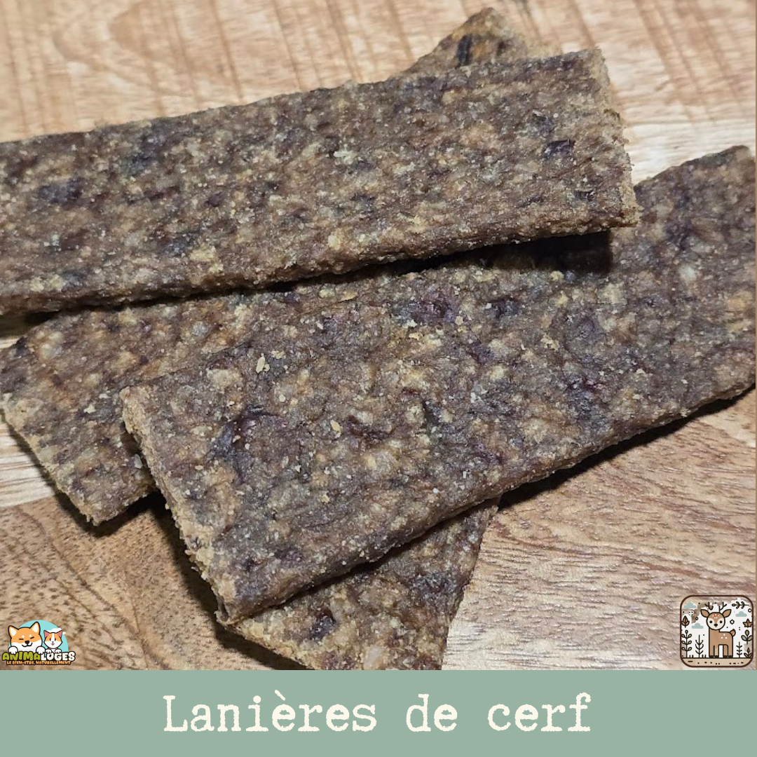 Les Lanières de Viande de cerf pour chien et chat, sont 100% naturelles, sans céréales, sans additifs, et parfaites pour une friandise saine et savoureuse.