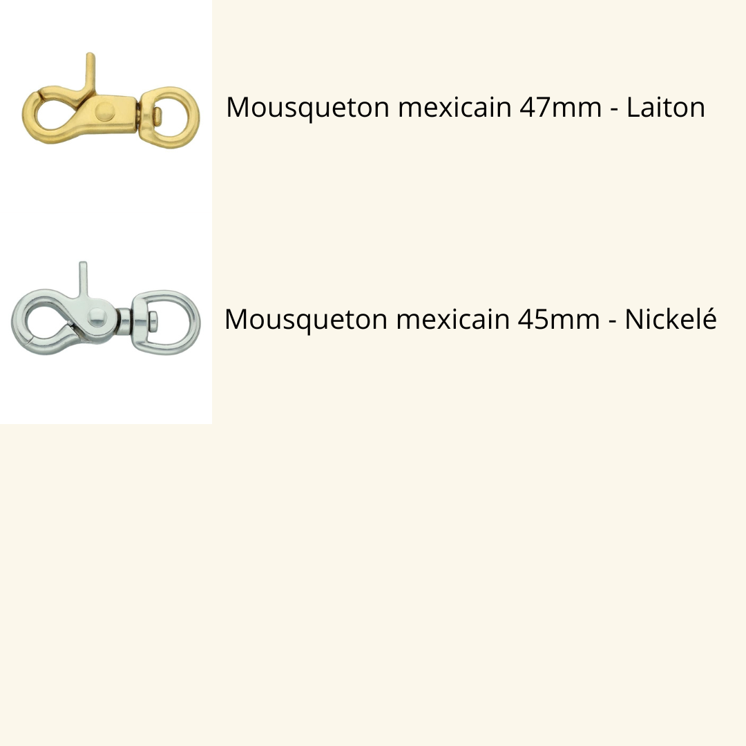 • Mousqueton mexicain 45 mm – Nickelé – plus compact, élégant, charge de rupture : 100 kg