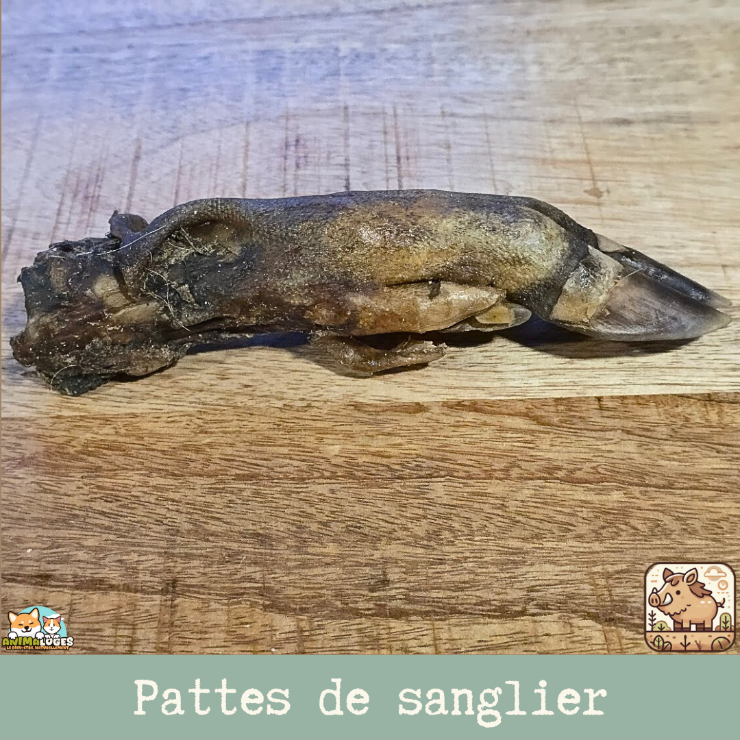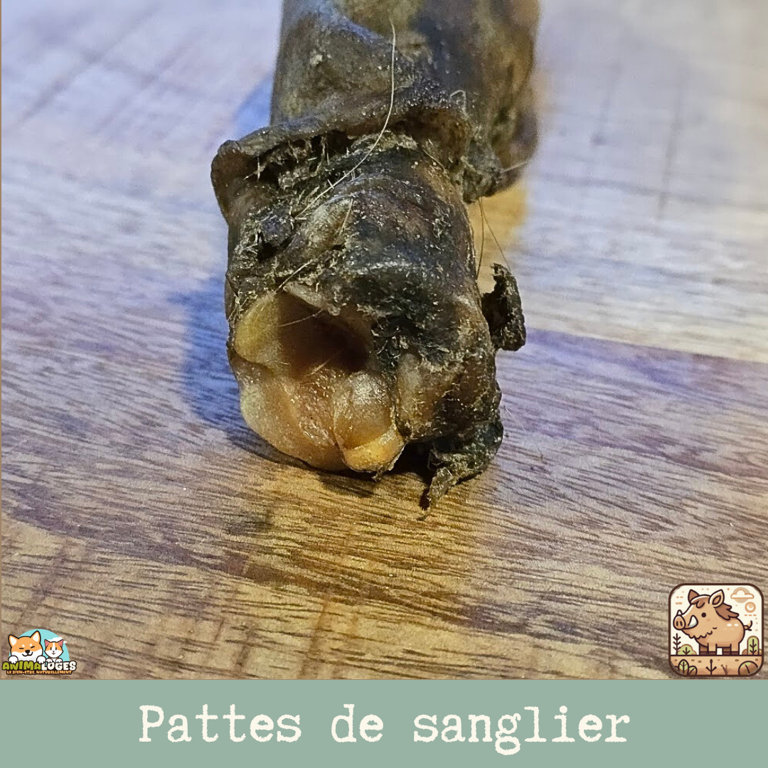 Patte de sanglier séchée naturelle pour chien — friandise de mastication durable, riche en protéines et parfaite pour l’occupation et l’hygiène dentaire.