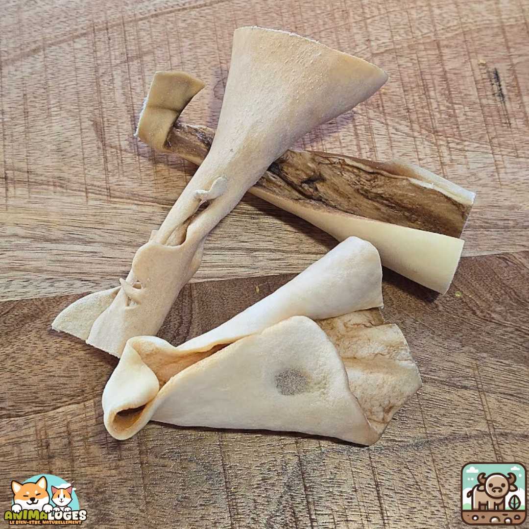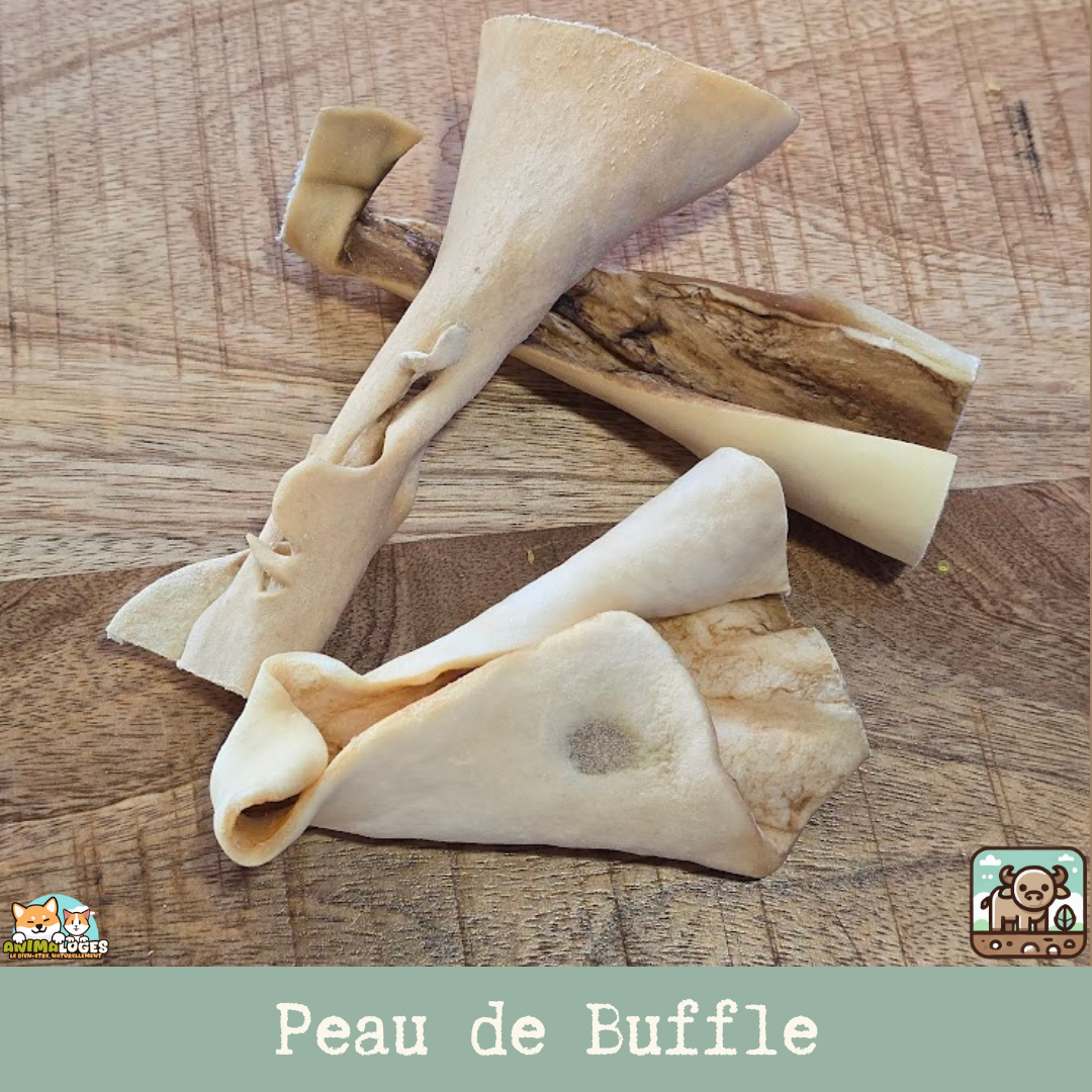 La peau de buffle se distingue par sa texture ferme qui incite à la mastication longue durée, favorisant ainsi une stimulation mentale essentielle pour réduire l’ennui et le stress. Grâce à l’action mécanique de la mastication, elle contribue aussi à une bonne hygiène bucco-dentaire, aidant à diminuer progressivement la plaque et le tartre.