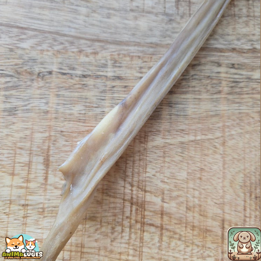 La viande et la peau de lapin sont naturellement riches en protéines et faibles en matières grasses, ce qui en fait une friandise saine et nutritive. Le lapin étant une protéine alternative, il est souvent bien toléré par les chiens sensibles ou souffrant d’intolérances alimentaires.