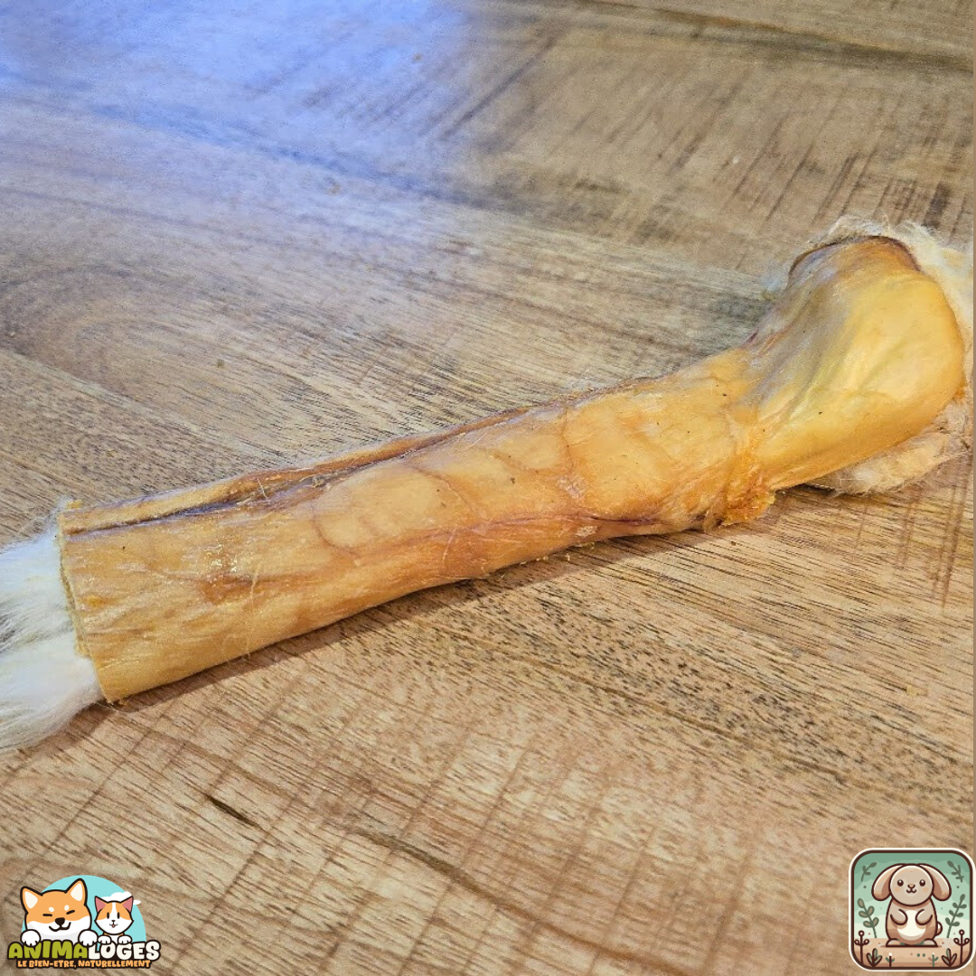 La présence naturelle des poils apporte un bénéfice supplémentaire : ils peuvent agir comme des fibres naturelles, contribuant au nettoyage du système digestif du chien. Ce type de friandise est souvent apprécié dans l’alimentation naturelle du chien pour son côté plus instinctif et proche de son régime carnivore.