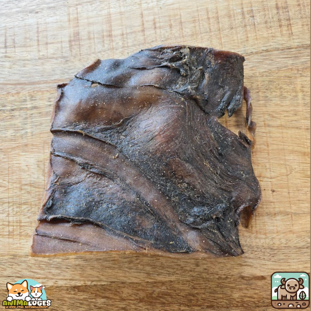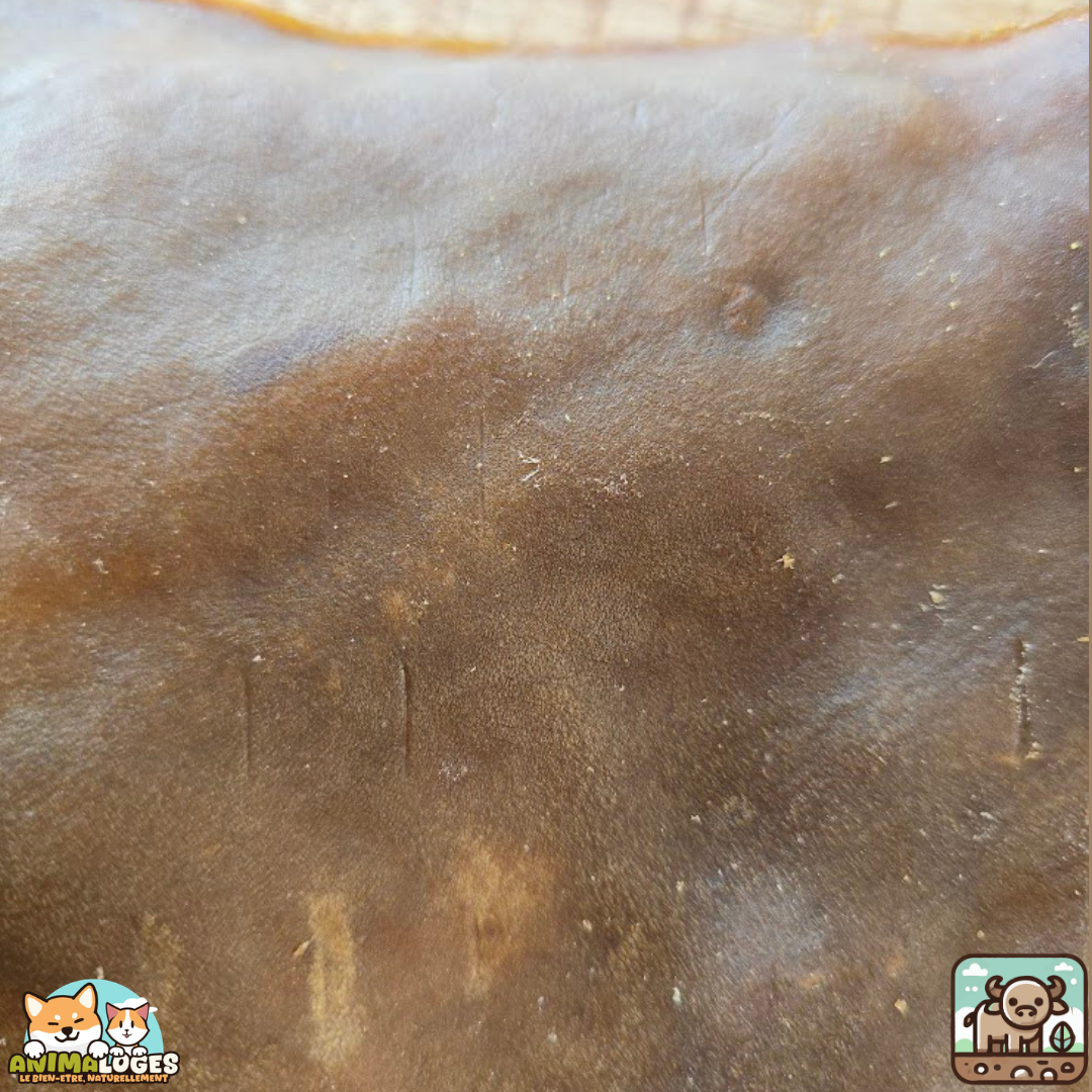 Plaque de buffle séchée naturelle pour chien — friandise de mastication résistante, riche en protéines, idéale pour occuper et favoriser une meilleure hygiène dentaire.