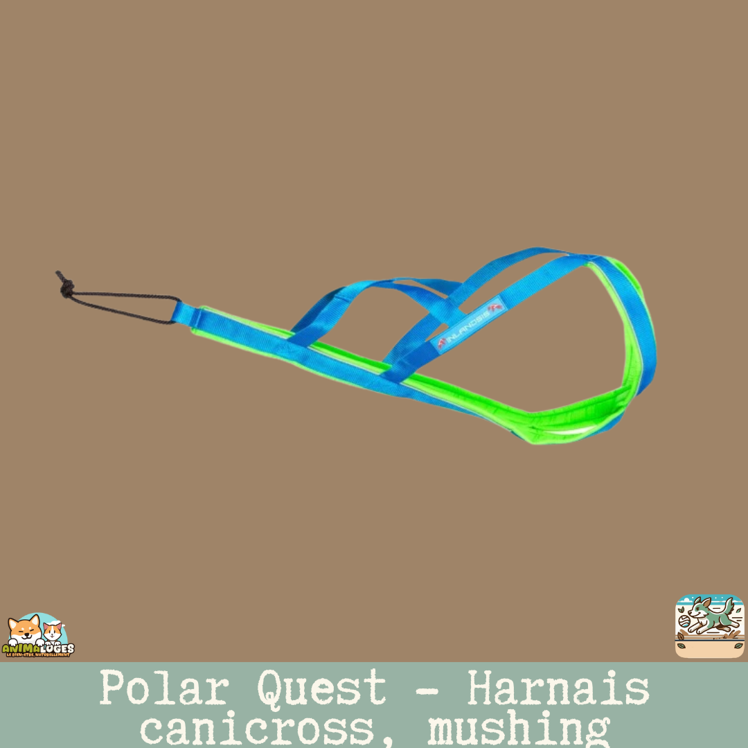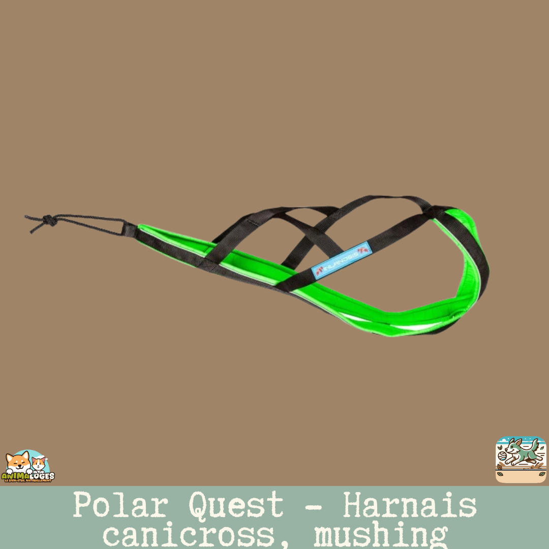 Le Polar Quest est un harnais de traction de type X-Back conçu pour les chiens sportifs de plus de 15 kg, destiné aux activités telles que le canicross, le cani-VTT, le skijoring, le mushing ou les randonnées attelées.