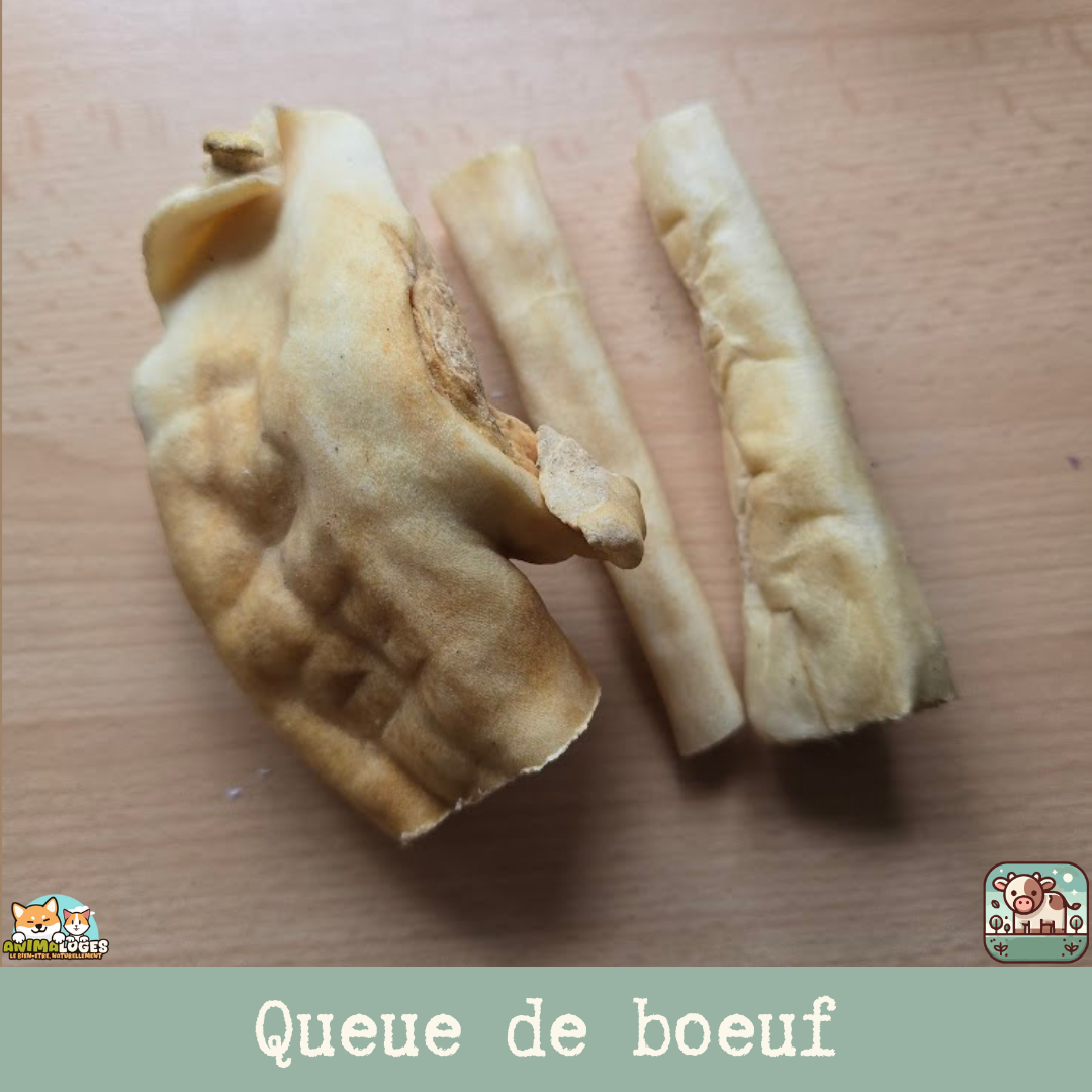 Les Queues de bœuf séchées sont une friandise 100% naturelle, parfaite pour satisfaire l’instinct de mastication des chiens de taille moyenne à grande. Ces morceaux de queue de bœuf offrent un goût riche et savoureux, sans aucun additif, conservateur, colorant, ou sous-produit animal, ce qui en fait une récompense saine et pure. Elles apportent également des bienfaits pour la santé dentaire de votre chien en favorisant un nettoyage naturel des dents grâce à la mastication.