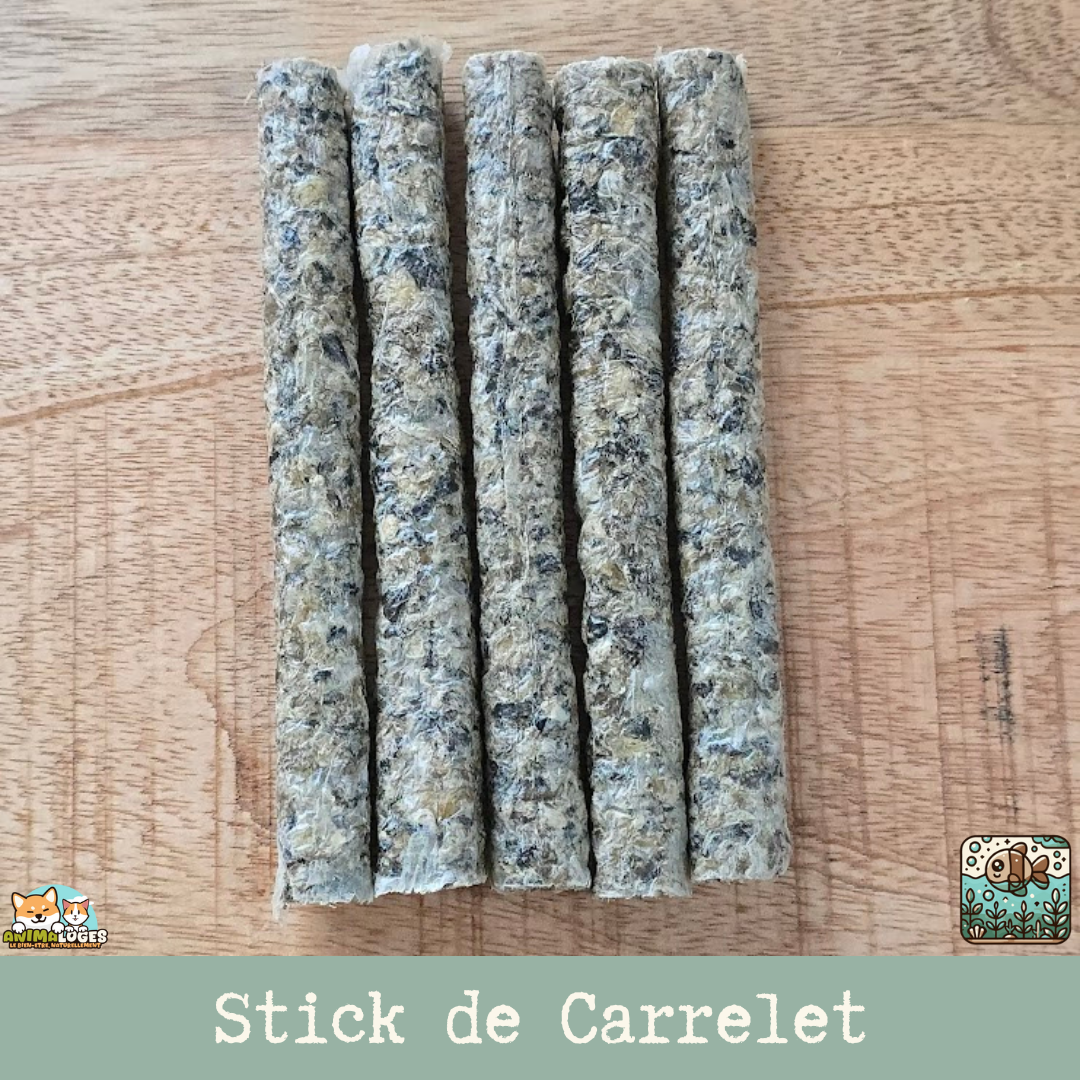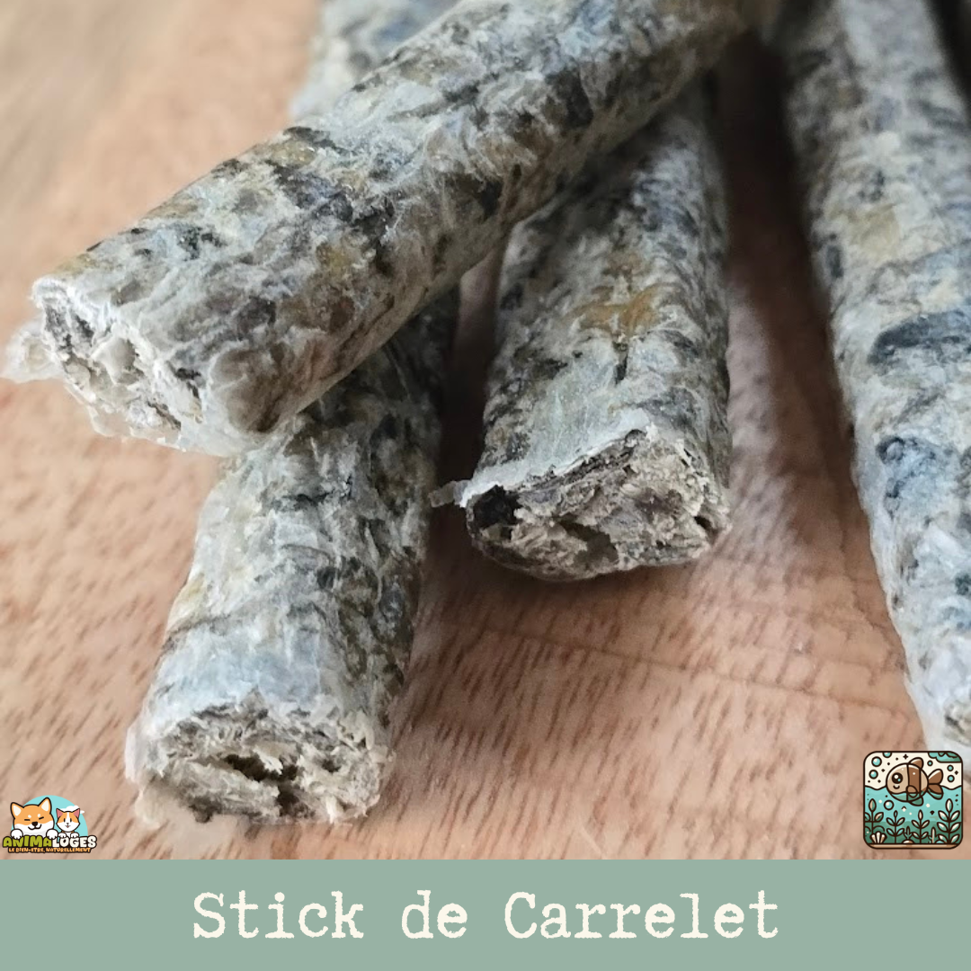 Offrez à votre chien une friandise marine saine, naturelle et irrésistible avec notre Stick de carrelet séché pour chien. Confectionné à partir de carrelet séché, un poisson plat riche en protéines hautement digestibles et acides gras essentiels (oméga-3), ce snack représente une récompense savoureuse, légère et bénéfique pour la santé de votre compagnon.