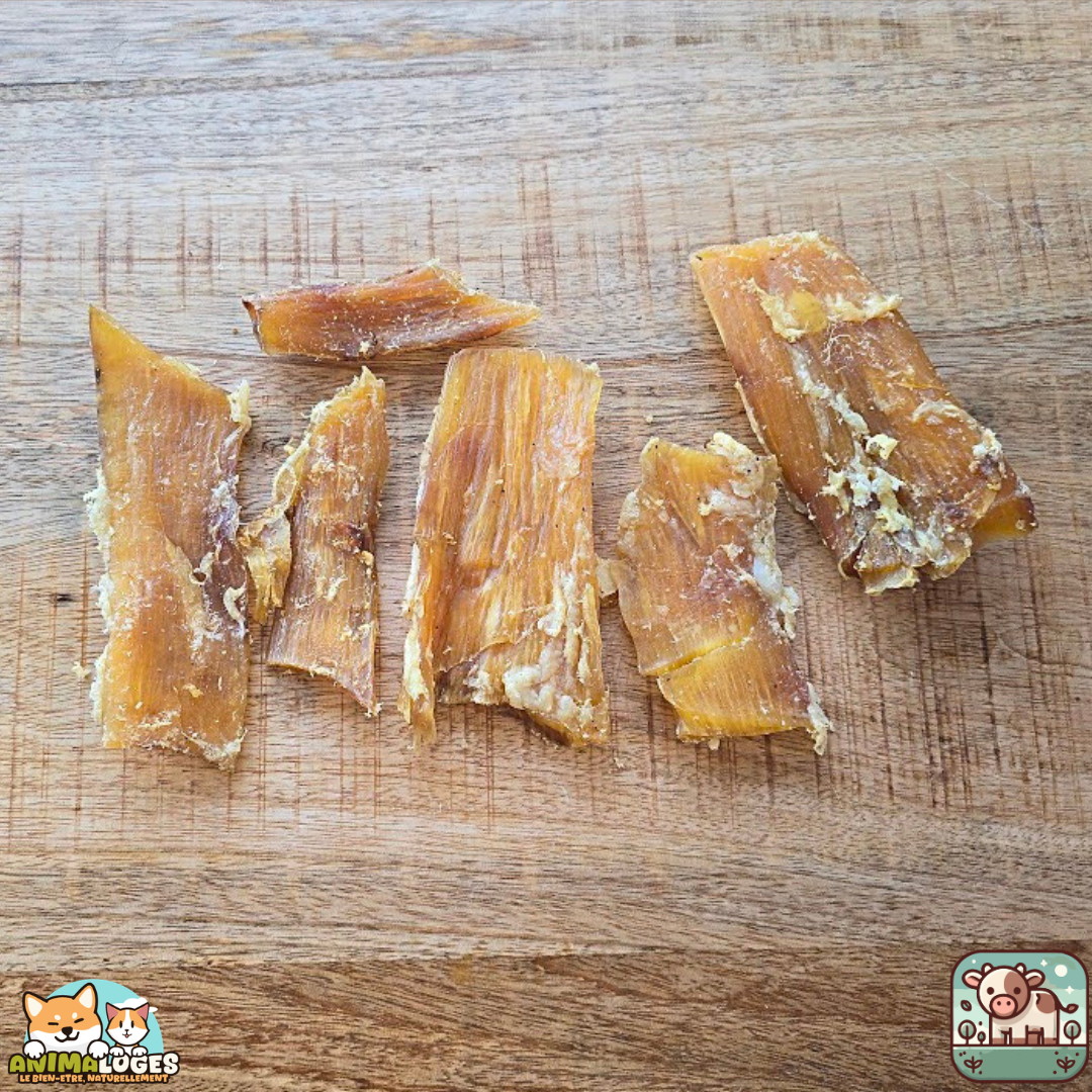 Naturellement riches en protéines animales, les tendons de bœuf sont très digestes, ce qui en fait une alternative saine aux friandises industrielles trop transformées. Ils peuvent être proposés comme snack entre les repas, récompense lors des séances de dressage, ou tout simplement comme moment de plaisir sain pour votre chien.
